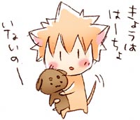 ひとりのよる おねえちゃんのところにおとまりだって。 いつもいっしょにあそんだり、 いつもそばでねてるけど、きょうは… ひとり。 へいき、へいき。 はーちょいなくても、へい…き…… やっぱりさみしい…… はーちょのおふとんでねようっと。 においするから、さみしくない〜 ☆ ☆ ☆ ただいまですぼす! おれいなくてもへいきでしたかー!? (はーちょのおふとんにいたから!) (へいきなぼすはかっこいいけど、でもちょっとさみしい…) 090403 横丁indexへ indexへ
