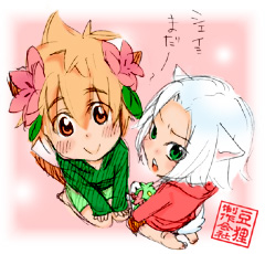 わんこがだっこしてるのはポケモソのシェ/イ/ミです。 にゃーがつけてるお花はシェ/イ/ミとおそろいです。 ……すいません、ポケモソ好きなもので…