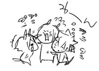 習性 !!! ↓ な、なんですか、ぼす? … ↓ めむいの…(ねむいの) うわわん、やめてくださいぼすぅぅぅ!!! * * * こうまが便乗して来た! なになになにしてんの、おれもやるー! おま、さわんじゃねぇよー! 081215 横丁indexへ indexへ