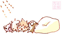 おおそうじ! おてつだい、する!! やるきまんたん! だけど… ↓ ハタキに大興奮(猫だから) ↓ 掃除機におびえる(猫だから) ↓ じゃあ、「干される係」で… 081228 横丁indexへ indexへ