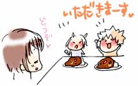 カレーの日 おだいどころからいいにおいする! きょうのごはんはカレーだね! たくさんたべてねv ! からかった!! ね、べろへいき?つにゃのべろへいき? だいじょうぶですよ、へいきです! へいきならたべる〜 からいけど、ママンのカレーおいしいのvV 090122 今日はカレーの日らしいですよ 横丁indexへ indexへ