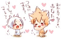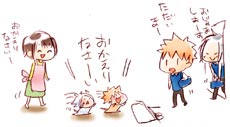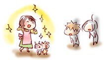 おでむかえ じゅうだいめとでっかいはやとが帰って来たよ! おかえりなさーいv ?何か芸でもしてくれるのかな? いくよ〜せーのっ くいっくいっ ママンも参加! 27「そんなことどこで覚えてくるのってゆうか母さんまで何やってんの!」 59「選べとか、無理ッス!///」 思春期に大ダメージ! 090518 横丁indexへ indexへ