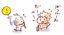 はねつき はねつきするよ! (いいことかんがえた!) ふでこちょこちょくすぐったい! がまんしてくださいぼす〜v できた! かっこいい! 今年もよろしくお願いいたします。 100101 横丁indexへ indexへ