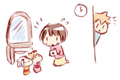 はれぎ ママンなにしてるの? お化粧、ふたりもする? うふふ、おめかしさんvV ((なんだか、そわそわする…)) お化粧したしせっかくだから… 晴れ着、着せちゃいました☆ ママン、おきものかわいい? かわいいわよ〜v 母さん、でかけるんじゃなかったの? !あらやだ、忘れてた! 片付け係・10代目。 120109 横丁indexへ indexへ