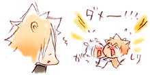 かわいいこ きょうもぷりーもとあそんだよ! きゃっきゃきゃっきゃ たのしい! いいなあ、小さい子、かわいいなぁ おりぇたちのこと、つれてっちゃうの? うん、かわいい方つれて帰ろうかな〜♪ !!!! 「ぼすのこと」「はちょのこと」 『つれてっちゃダメェー!!』 お互いにかわいいと思っているつにゃはちょ。 あんなに仲良しなの、離ればなれにさせられないな。 でも、小さい子かわいいなぁ… 100503 横丁indexへ indexへ