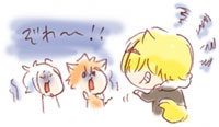 おはなみ おはなみにきたよ! さくら、きれいね〜 あっ、ぼすだ! おまえらも花見に来たの? なあなあ知ってる? 桜の木の下には こわ〜いオバケが住んでるんだぜ〜 こわーい!! シシッ、ちょろいなーw さー戻ってお弁当食べようぜ! なんだよぼす、もう帰るのかぁ? 来たばっかだろぉ〜!? 130426 横丁indexへ indexへ