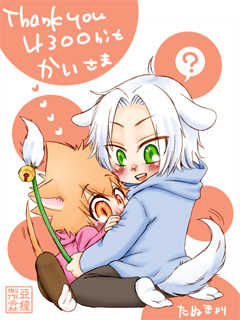 4300hit/かいさま 『つにゃとはちょで、はちょのかわいいしっぽふりふり!』とのリクエストでした。 お待たせいたしました!!静止画でふりふりできてるでしょうか……! つにゃが、獲物を狙う目になってい…る……! 文字なしver.とおまけちゃん。 ご依頼ありがとうございましたっ! 090215/たぬきより 戻る indexへ