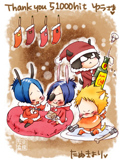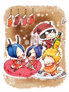 51000hit/ゆうさまのご依頼 クリスマスのごちそう、うまうま!vV 『X'masな黒曜ズ』とのリクエストでした。 大変!お待たせしました…!よかったギリギリ間に合った…!! 骸様はイタリア式に、パネトーネぎょうさん買い込んでそうですね… 文字なしver.とおまけちゃん。 ご依頼ありがとうございました! 091225/たぬきより 戻る indexへ